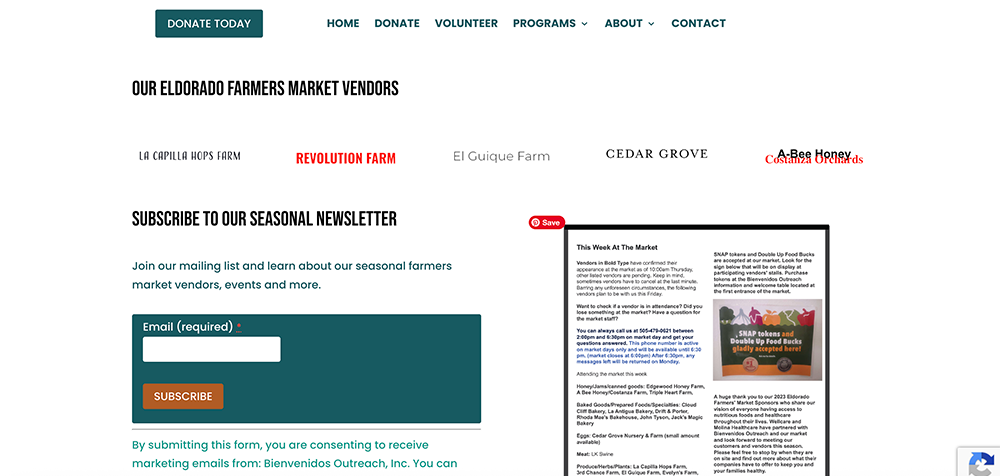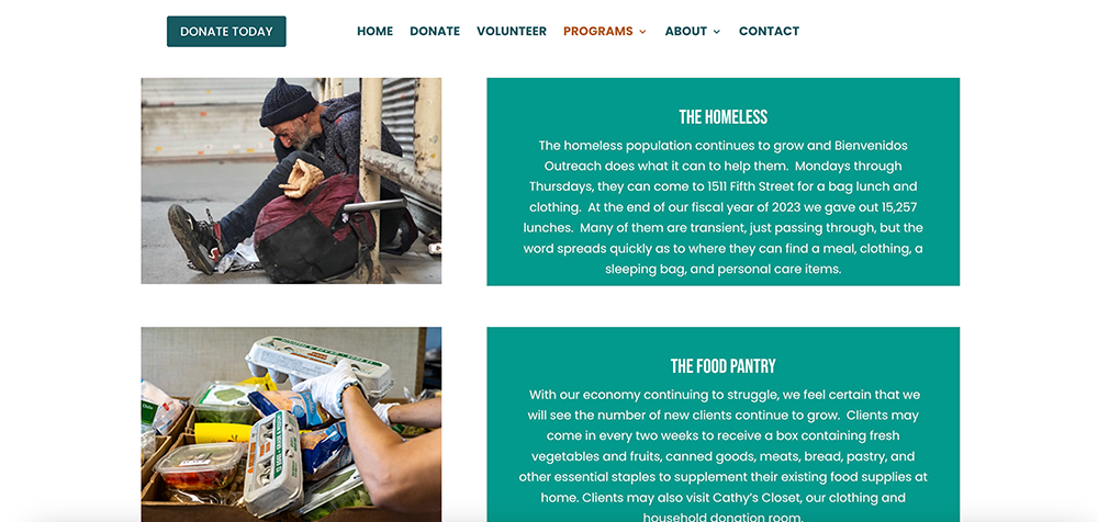 Food Pantry and donation center Bienvenidos Outreach, Inc worked with YogiPro on a full website redesign on WordPress. Bienvenidos Outreach, Inc has been serving the Santa Fe community with boxed food, clothing, necessities and donations since 1989. The new website promotes their services for the community, including receiving monetary and physical donations, recruiting volunteers, and promoting the hours for recipients to receive services. YogiPro also built a Coming Soon Landing page.
